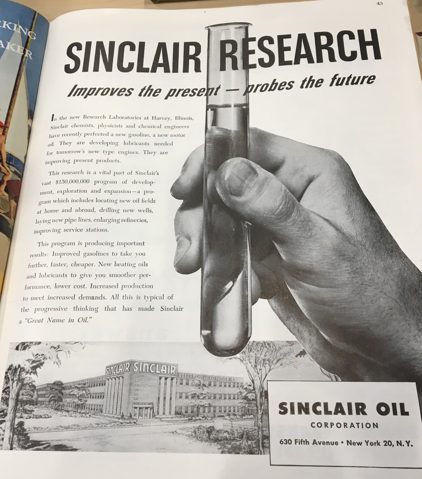 "A Portrait of Oil --Unrefined" Standard Oil of New Jersey is having a photographic exhibit of nice pictures about oil exploration, so we will know that it is about more than Rockefellers strolling down the promenade. They're very nice pictures, even if I'm not sure what a "Virginia coal town" has to do with anything.