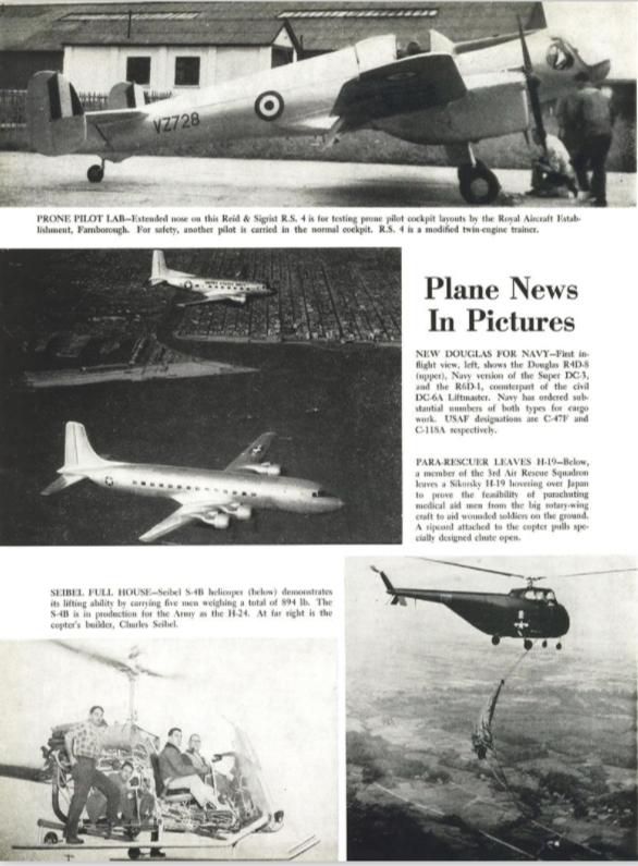 News Digest reports that the Super Connie has been certified for passenger operations by the CAA; that the Lockheed F-94 will be officially named the Starfire, that a UAL DC-3 has crashed in the Rockies on a training flight, killing a pilot captain and two trainees while another DC-3 (Eastern) has been in a mid-air collision with a Piper. A more serious C-54 crash in Mexico has killed at least 13 and injured 7. The USAF has officially opened its airbase at Sidi Slimane, the first of five planned for Africa.